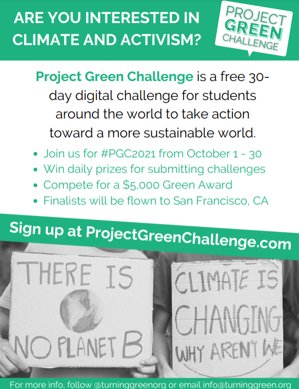 It's not too late! Sign up for a new daily eco-challenge with Project Green Challenge!PGC is 30-days of challenges that center on environmental issues, social & climate justice, public health, and climate advocacy for students around the globe.