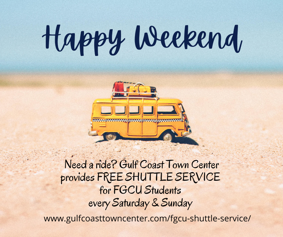 Need a ride? Hop on the FREE GCTC Weekend ShuttleGulf Coast Town Center operates a free shuttle service for students during Fall and Spring semesters. The shuttle picks up at SoVi and NLV and drops off at Target, Regal Cinemas, & the GCTC Courtyard Fountain