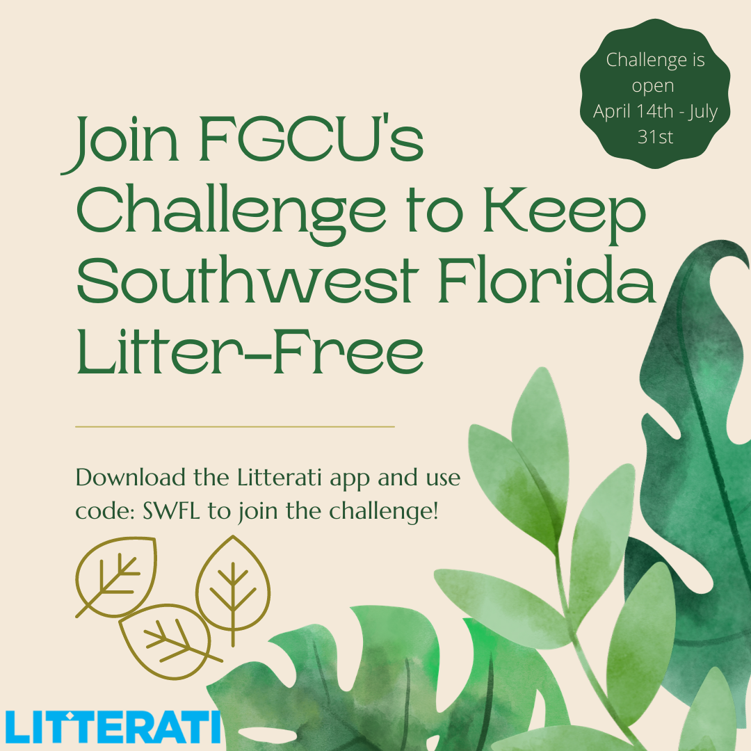 Respect the Nest Campus Clean Up - Thursday 6/17/21 8-11amSign up now for FGCU's Dept of Environmental Health & Safety's next Campus Clean Up. We will be using the Litterati app to record data, so please download the app before you come, and be sure to have closed-toe shoes, water, and sun protection.